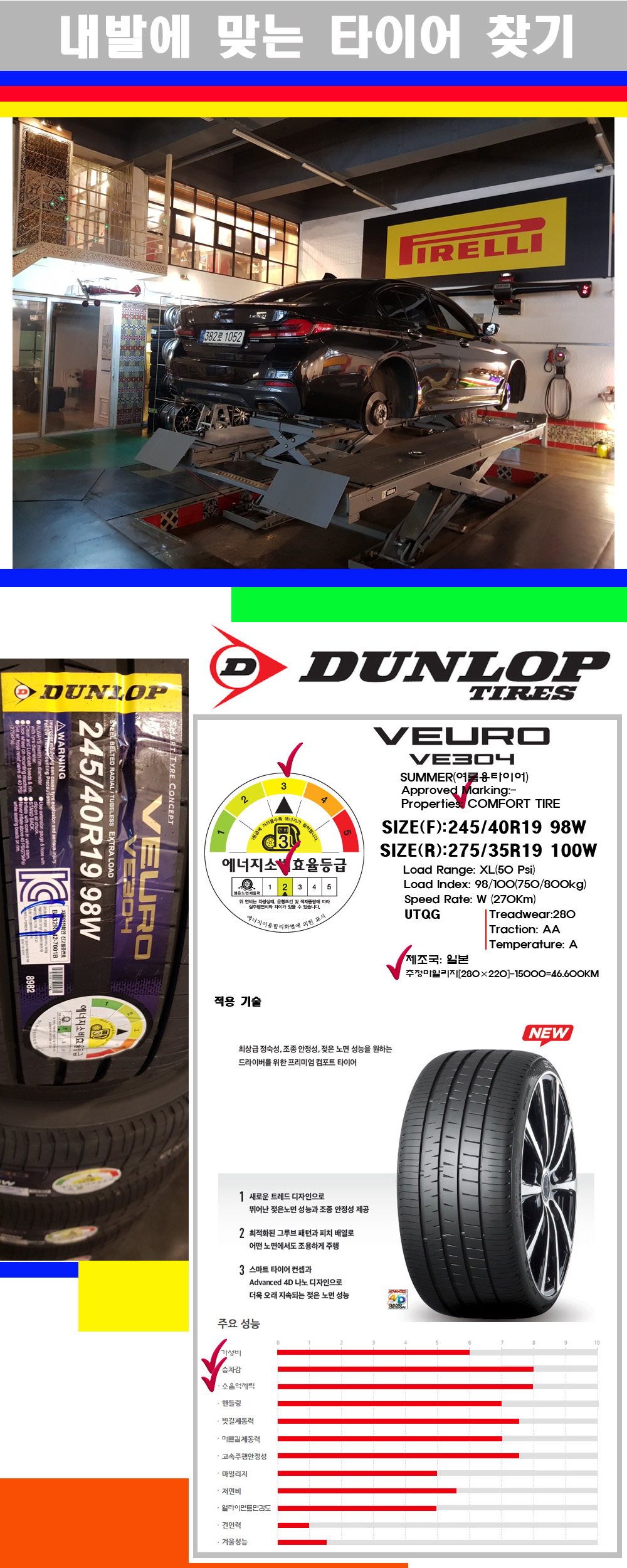 | [대구던롭타이어싼곳] [BMW 520i타이어] 2454019 2753519 던롭타이어 뷰로 VE304 F)245 40 19 R)275 35 19 | |||
