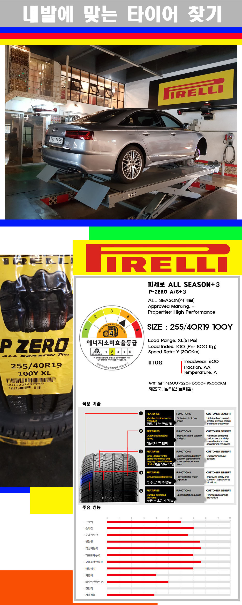 | [대구피렐리타이어싼곳] [아우디A6타이어] 2554019 피렐리타이어 피제로 올시즌+3 255 40 19 | |||