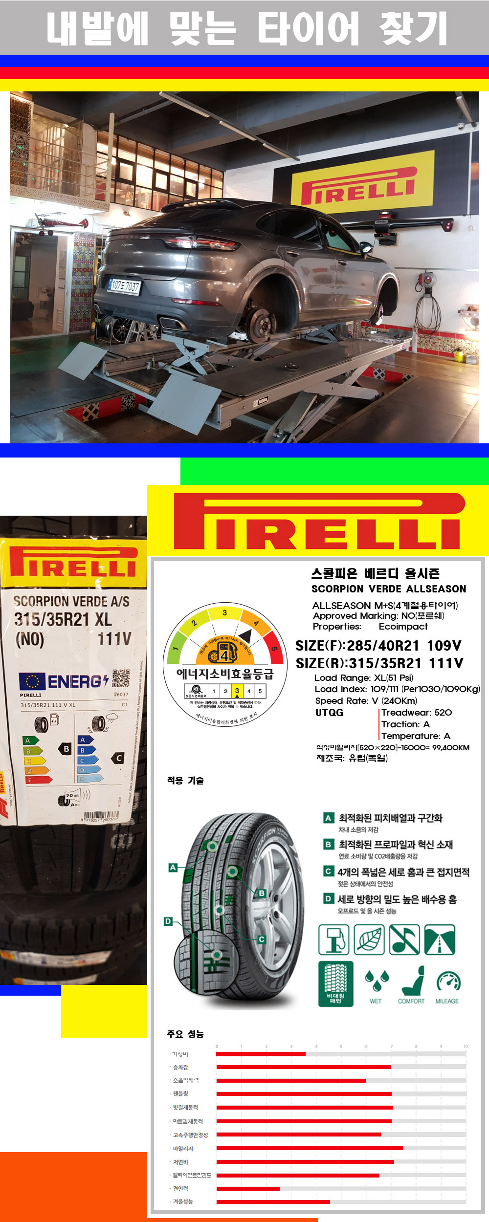 | [대구피렐리타이어싼곳] [포르쉐카이엔타이어] 2854021 3153521 피렐리타이어 스콜피온 베르디 올시즌(순정품) 전륜)285 40 21 후륜)315 35 21 | |||
