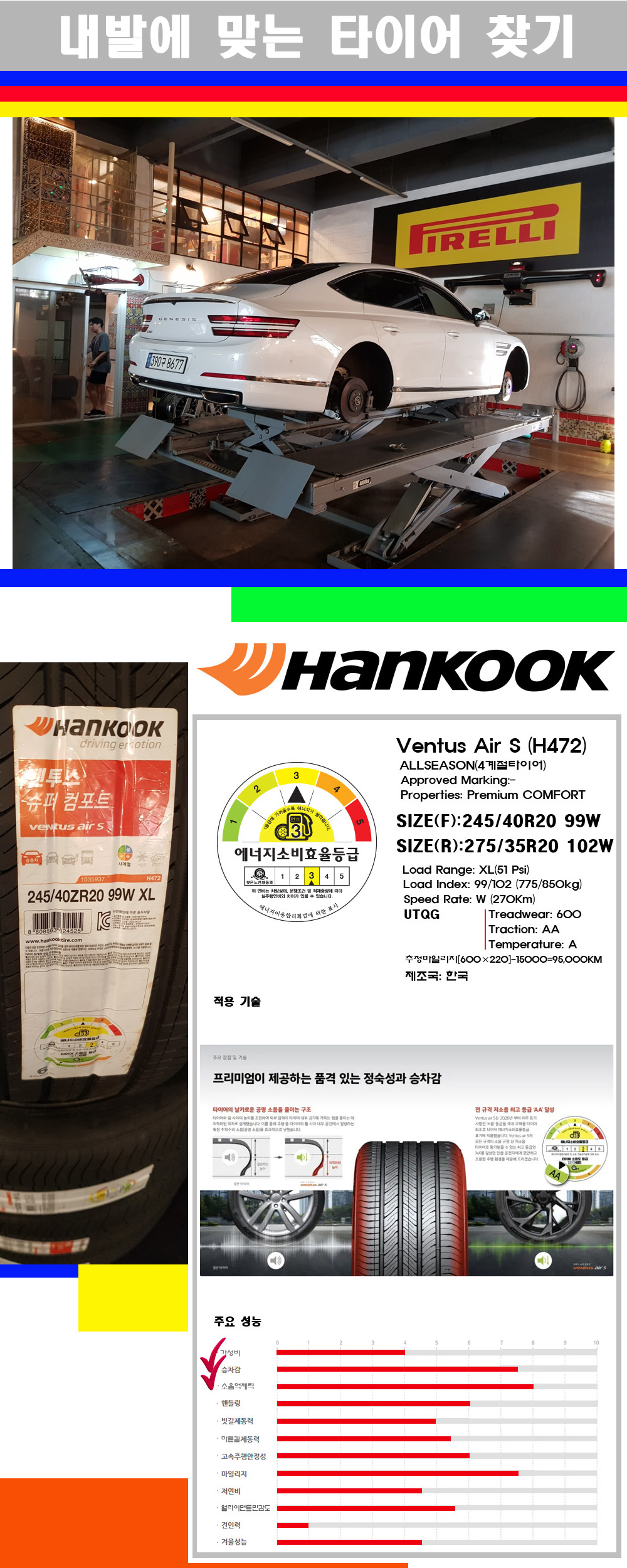 | [대구한국타이어싼곳] [제네시스G80타이어] 2454020 2753520 한국타이어 벤투스 에어S 전륜)245 40 20 후륜)275 35 20 | |||
