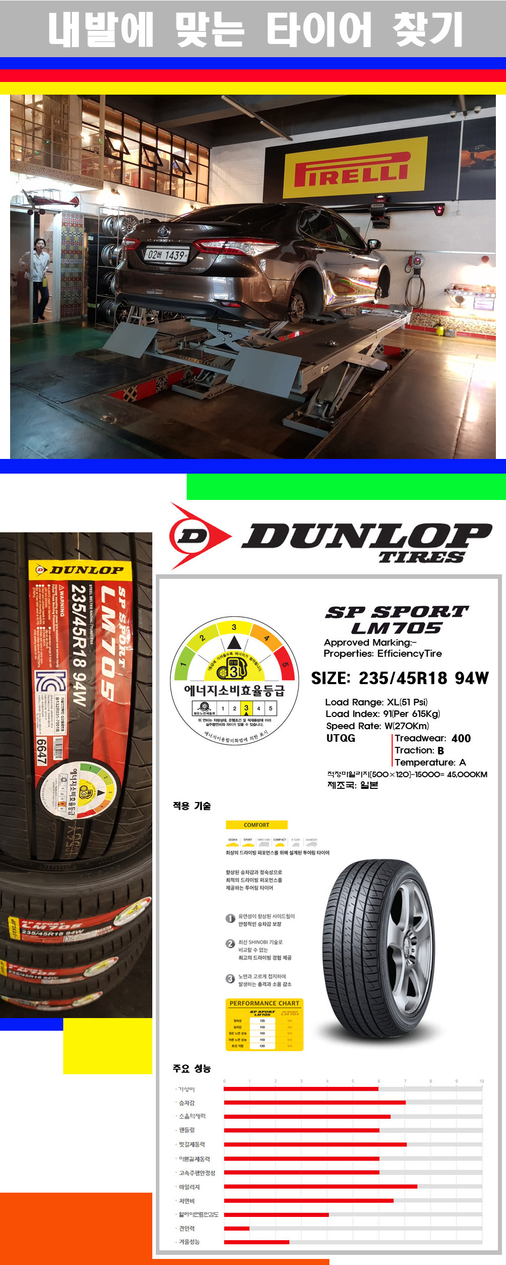 | [대구던롭타이어싼곳] [도요타 캠리타이어] 2354518 던롭타이어 LM705 235 45 18 | |||