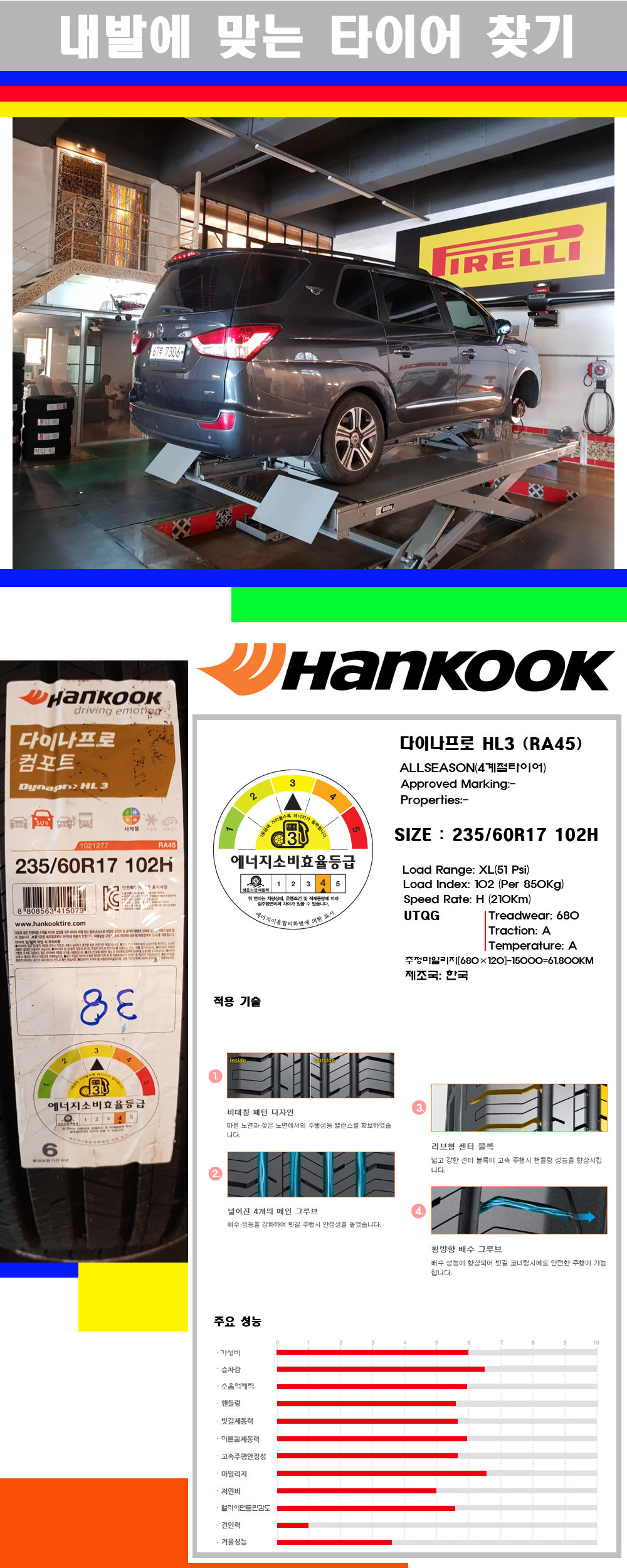 | [대구한국타이어싼곳] [투리스모타이어] 2356017 한국타이어 다이나프로HL3 235 60 17 | |||