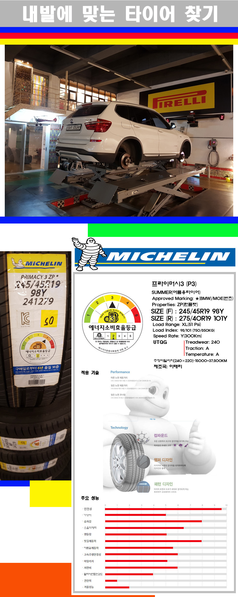 | [대구미쉐린타이어싼곳] [BMWX3타이어] 2454519 2754019 미쉐린타이어 프라이머시3 ZP 전)245 45 19 후)275 40 19 | |||