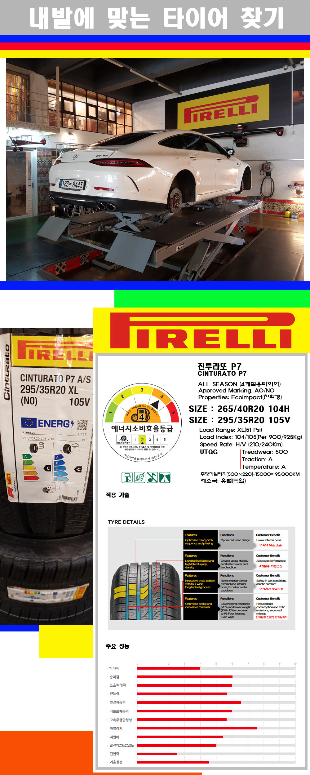 | [대구피렐리타이어싼곳] [벤츠GT43타이어] 전)265 40 20 후)295 35 20 피렐리타이어 친투라또P7올시즌 전)2654020 후)2953520 | |||