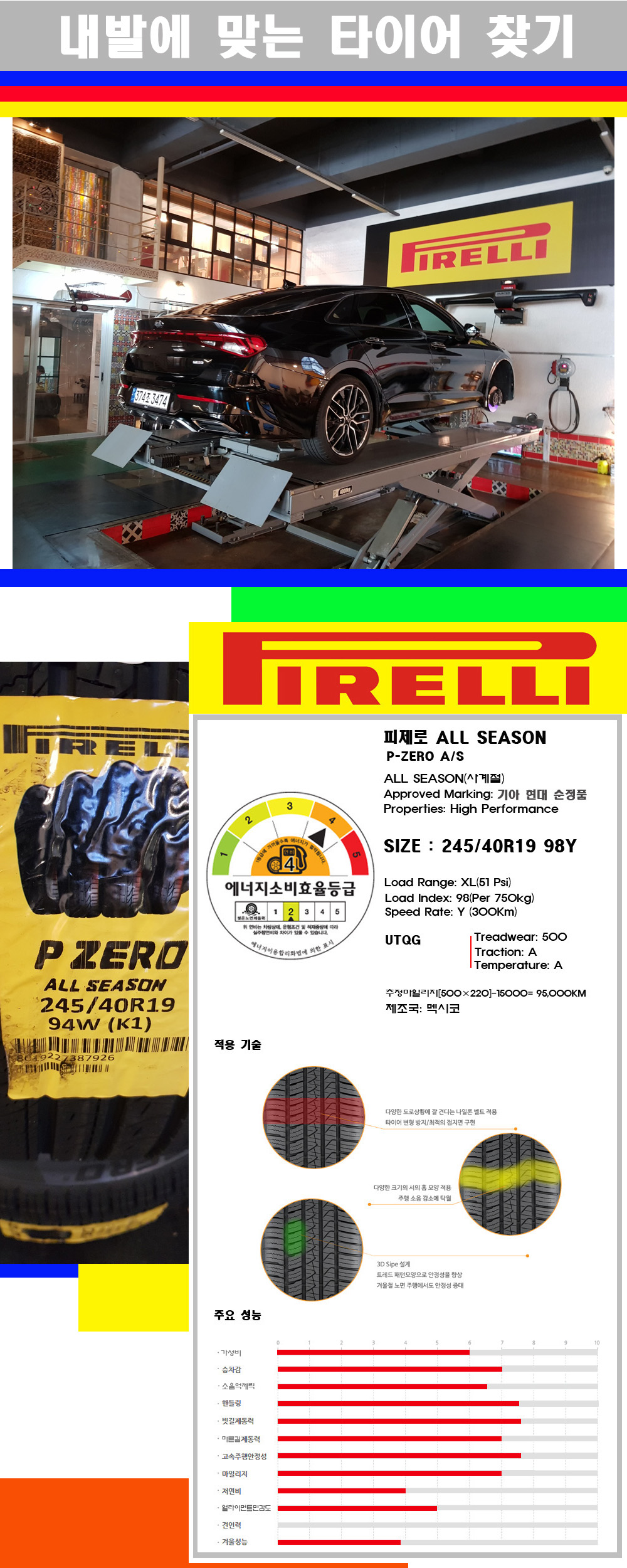 | [대구피렐리타이어싼곳] [K5타이어] 245 40 19 피렐리타이어 피제로 올시즌(순정품) 2454019 | |||