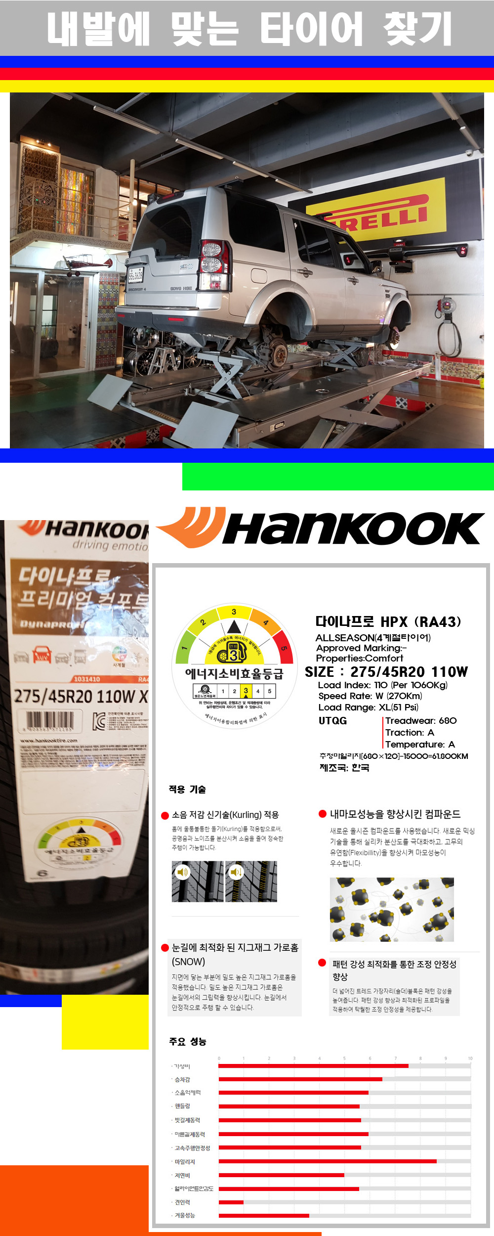| [대구한국타이어싼곳] [랜드로버 디스커버리4타이어] 275 45 20 한국타이어 다이나프로 HPX 2754520 | |||