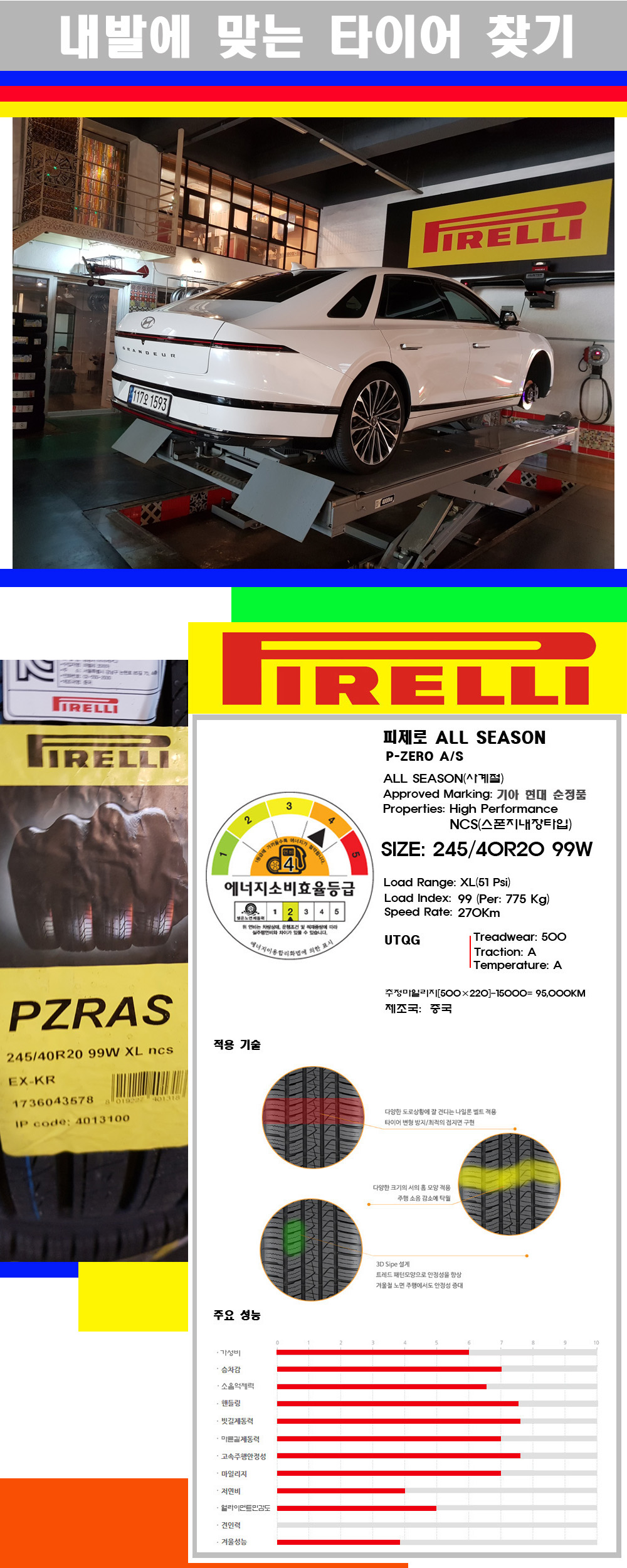| [대구피렐리타이어싼곳] [그랜저타이어] 245 40 20 피렐리타이어 피제로 올시즌(순정품) 2454020 | |||