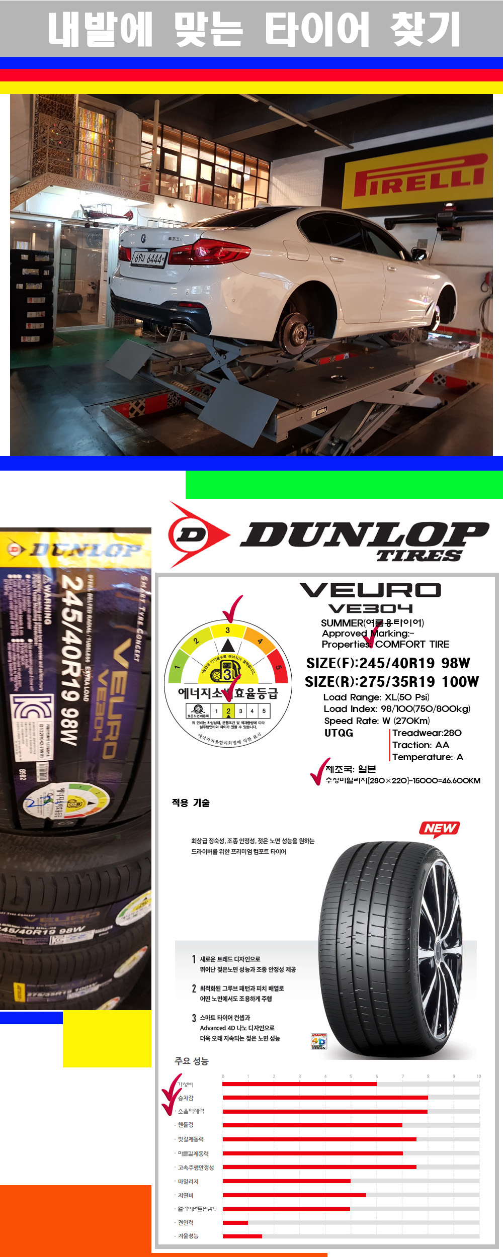 | [대구던롭타이어싼곳] [BMW530i타이어] 전)2454019 후)2753519 던롭타이어 VE304 전)245/40R19 후)275/35R19 | |||