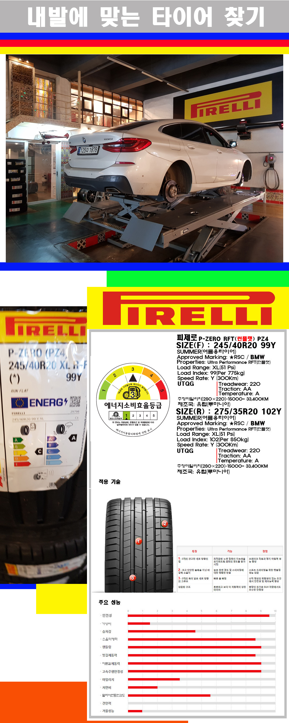 | [대구피렐리타이어싼곳] [BMW 6GT타이어] 전)2454020 후)2753520 피렐리타이어 피제로 PZ4 RFT(순정품) 전)245/40R20 후)275/35R20 | |||