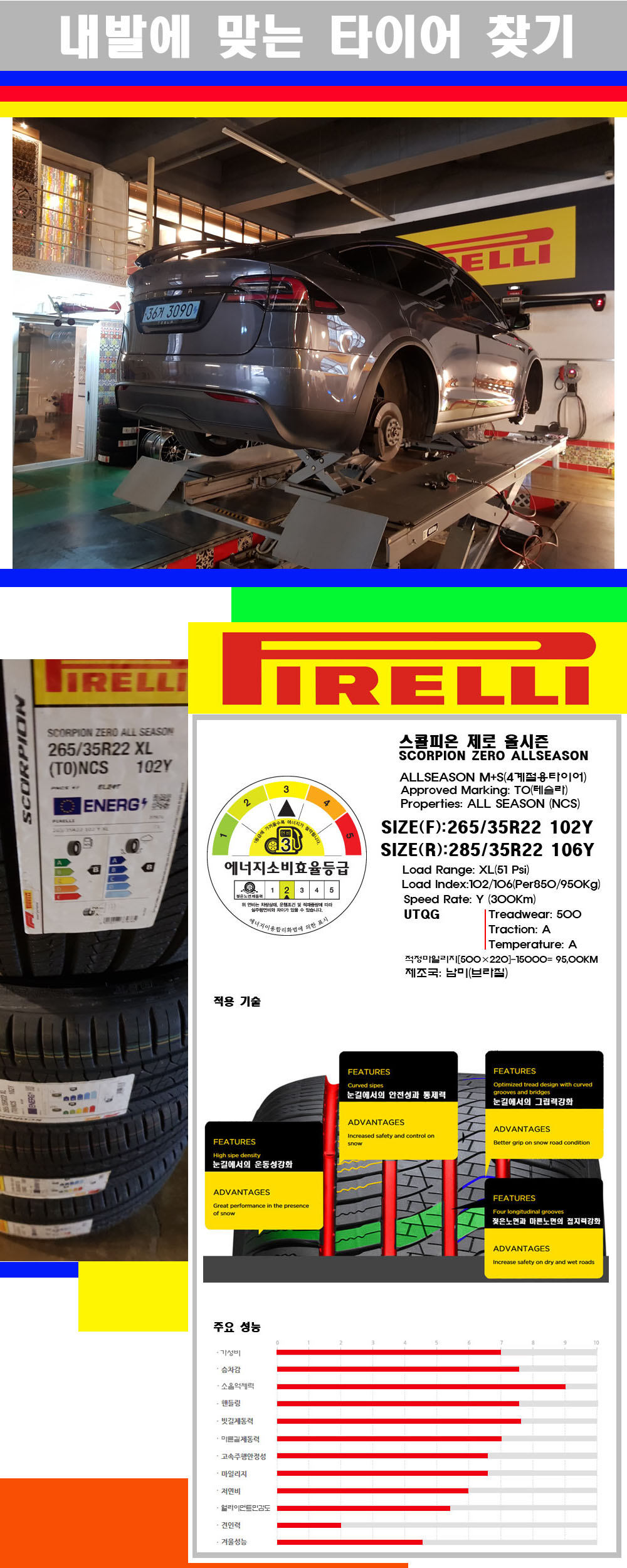 | [대구피렐리타이어싼곳] [테슬라 모델X타이어] 전)2653522 후)2853522 [타이어플러스] 피렐리타이어 스콜피온 피제로올시즌 (순정품) 전)265/35R22 후)285/35R22 | |||