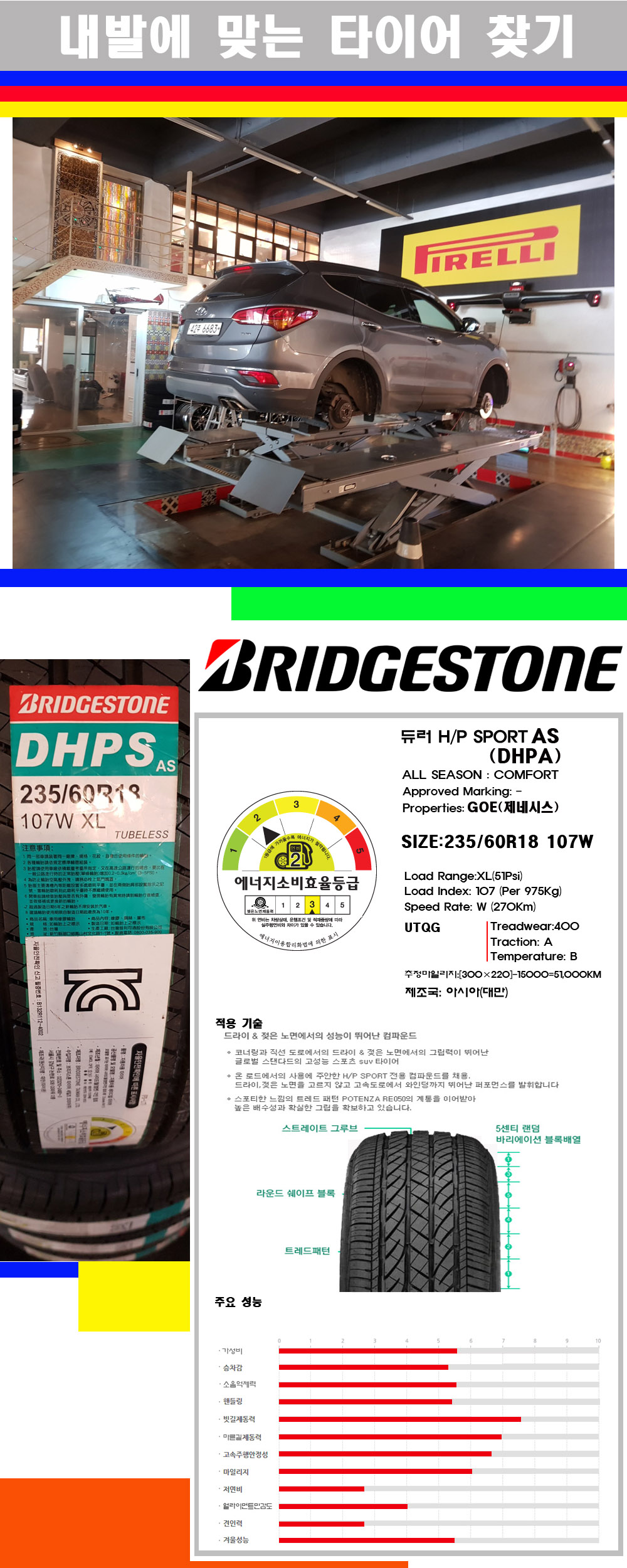 | [대구브리지스톤타이어싼곳] [싼타페타이어] 2356018 브리지스톤타이어 듀러 H/P SPORT AS(DHPA) 235/60R18 | |||