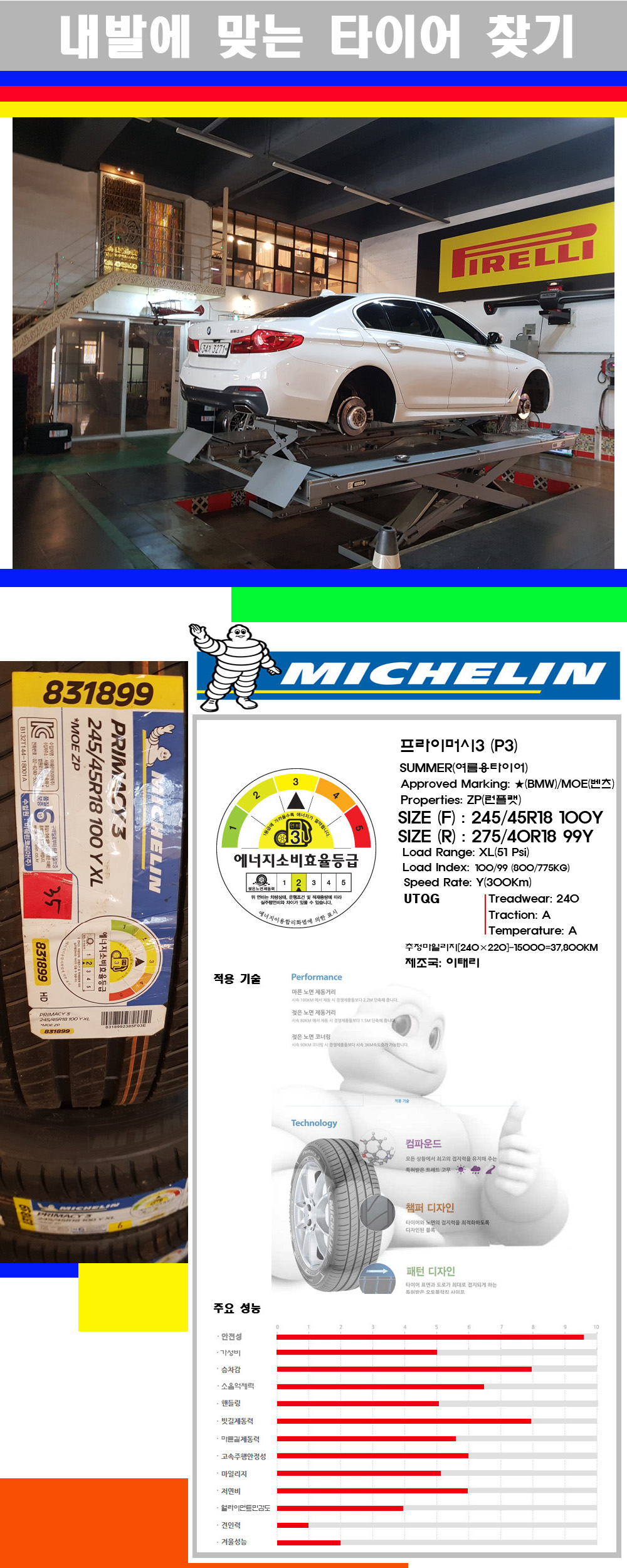 | [대구미쉐린타이어싼곳] [BMW520i타이어] 2454518 2754018 미쉐린타이어 프라이머시3 ZP 전륜)245/45R18 후륜)275/40R18 | |||