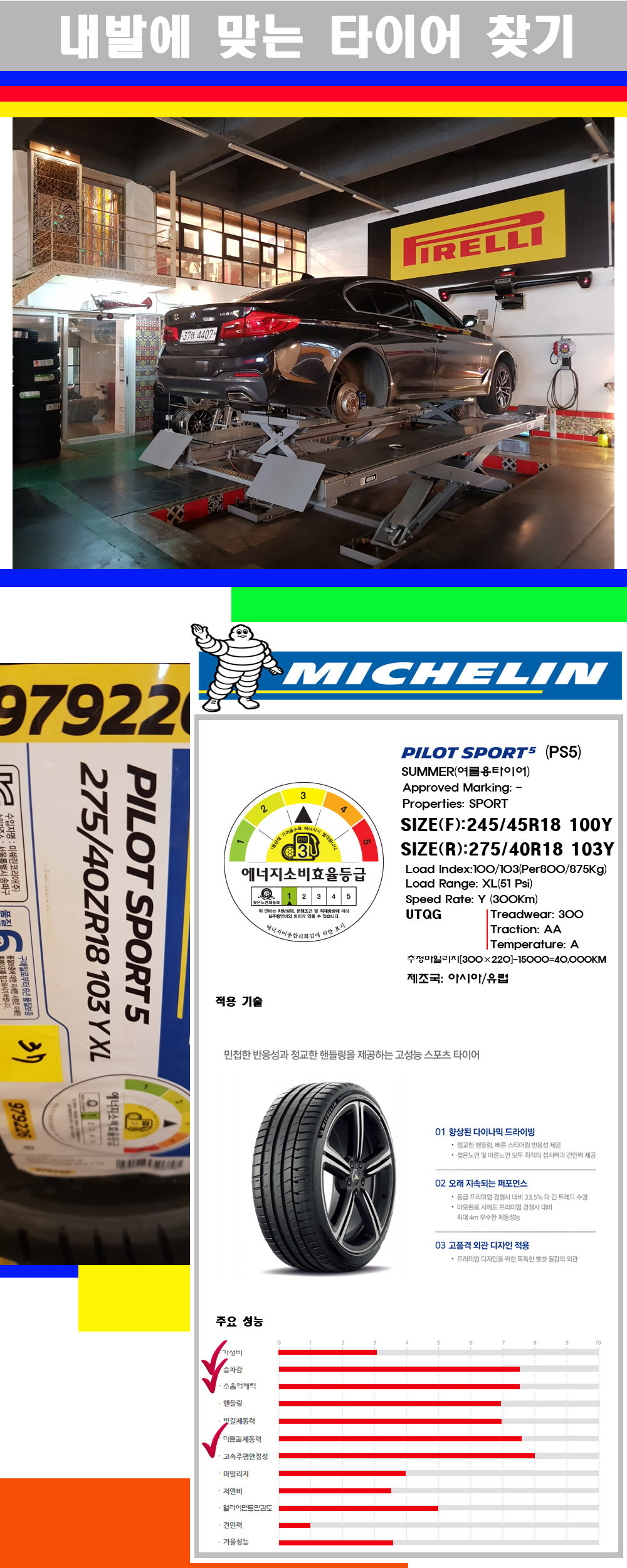 | [대구미쉐린타이어싼곳] [BMW530i타이어] 2454518 2754018 미쉐린타이어 파일롯 스포츠5 (PS5) 전륜)245/45R18 후륜)275/40R18 | |||