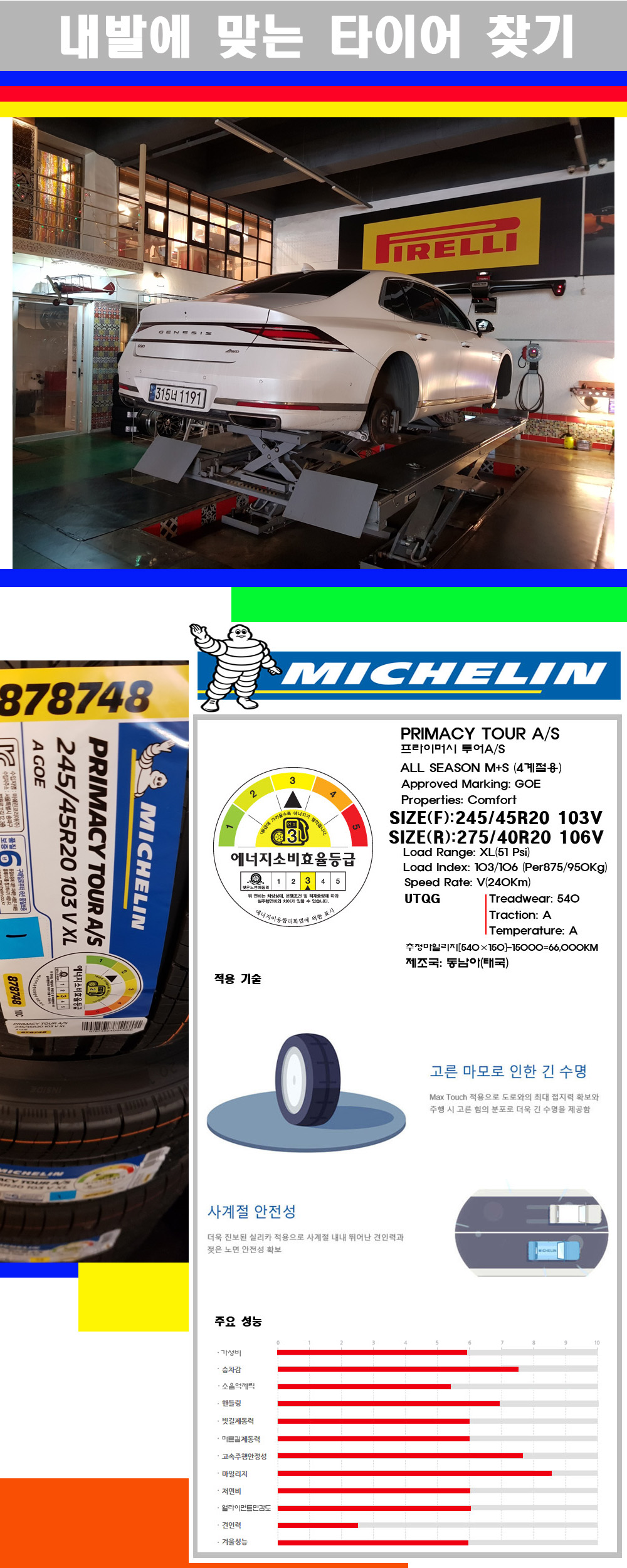 | [대구미쉐린타이어싼곳] [제네시스G90타이어] 2454520 2754020 미쉐린타이어 프라이머시 투어AS 전륜)245/45R20 후륜)275/40R20 | |||