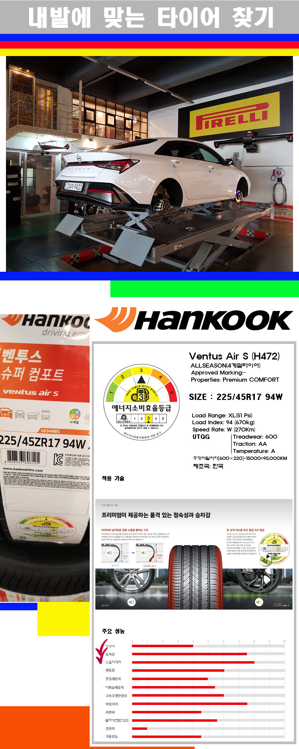 | [대구한국타이어싼곳] [아반테타이어] 2254517 한국타이어 벤투스 에어S 225/45R17 | |||