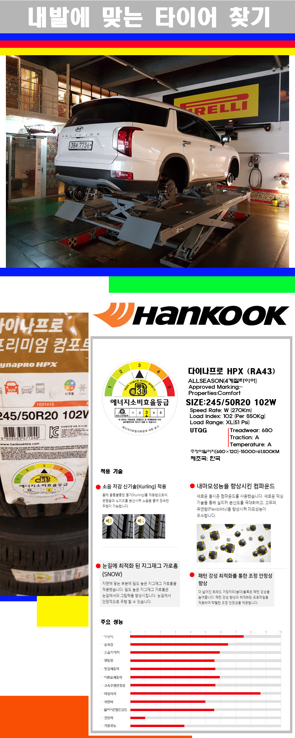 | 전국무료장착 무료배송 [팰리세이드타이어] 2455020 한국타이어 다이나프로 HPX 245/50R20 | |||