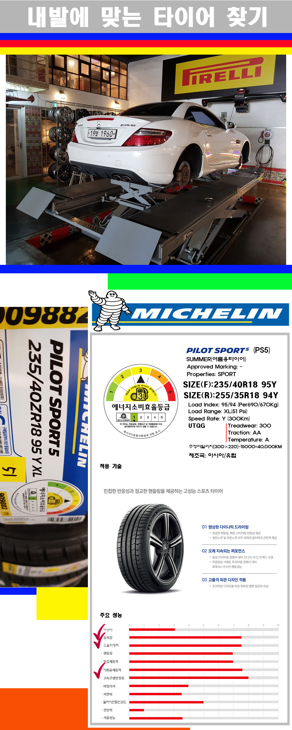 | 전국무료장착 무료배송 [벤츠SLK55AMG타이어] 2354018 2553518 미쉐린타이어 파일롯 스포츠5 (PS5) 전륜)235/40R18 후륜)255/35R18 | |||