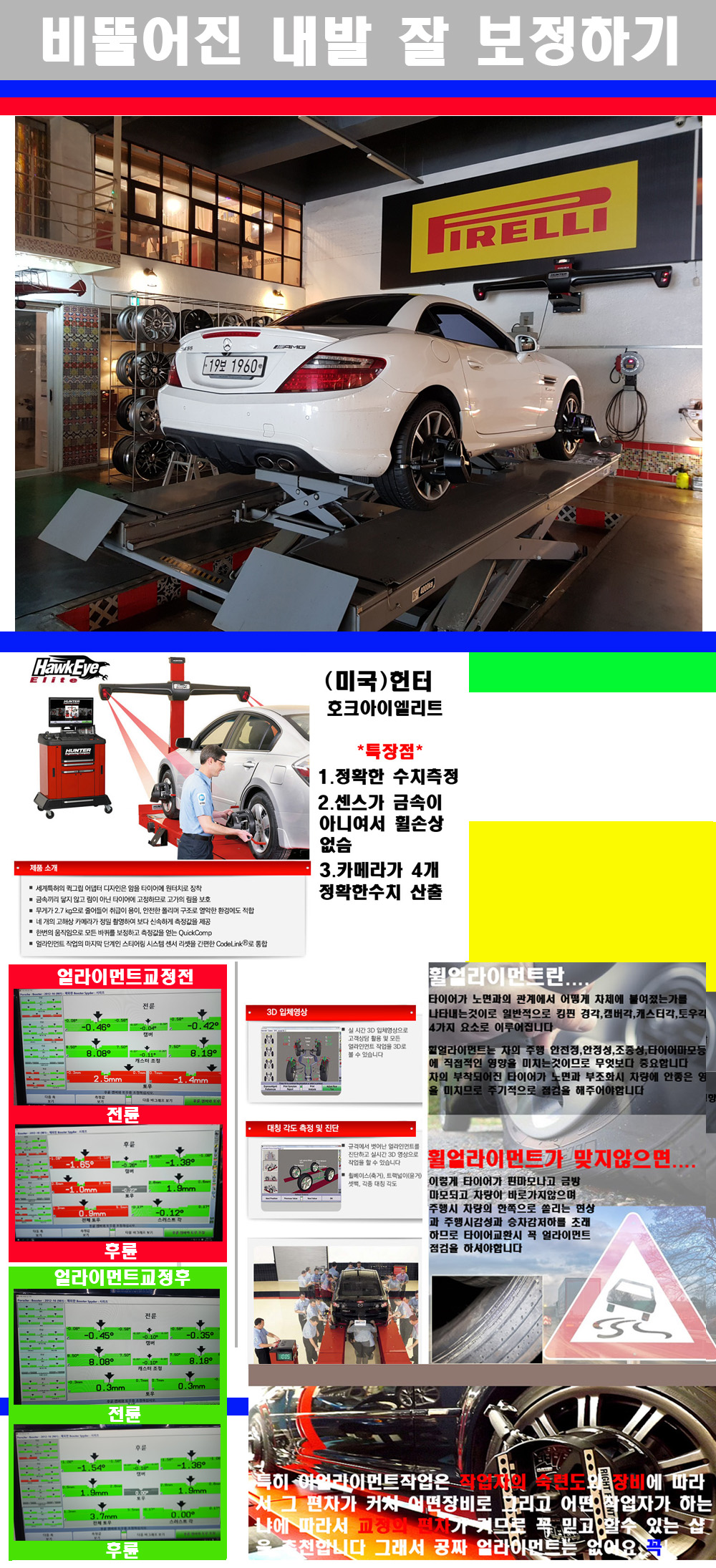 이후 미국 헌터사 호크아이엘리트 장비로 3D얼라이먼트를 진행했습니다 이장비는 현존하는 가장 진화된 얼라이먼트장비입니다 특히 4개의 고성능카메라가 장착되어져 있어 실시간으로 오차가 없는 측정값을 구현하며 바퀴당 각 휠센서 클램프가 프라스틱이며 타이어바닦면을 지지하는 방식이여서 휠의 손상이 없는것이 특징입니다 하지만 장비보다 차량의 얼라이먼트를 볼시 작업자의 정성과 그리고 능력과 숙련도가 관견이기에 꼭 휠얼라이먼트를 장사수단으로 하지않는 샵을 권장합니다 자사는 얼라이먼트정렬시 교정전 교정후를 구분하여 고객님께 직접 이수치값을 확인시켜드리고 작업을 하며 이후 각각의 특성을 가진 타이어들에 대해서 설명 및 관리요령 운전요령 같이 설명해드리고 있습니다 이후 타이어와 휠의 정확한 발란스값과 진동값을 보정후 헌터사 호크아이엘리트 3D얼라이먼트장비로 공장에서 처음 출고될시의 팩토리값으로 교정하였습니다 그리고 타이어질소가스주입기로 3번정도 진공상태로 만든후 질소가스를 주입했습니다 질소가스주입시 가장 관견은 순도이기에 이런 여러번의 진공상태후 주입하고 빼주는 과정를 많이 해주어야합니다 질소가스의 주입시 타이어공기압의 저하가 덜하고 화합물질이 반응을 하지않아 소음전파력과 그리고 타이어안쪽에 수분을 발생하지않으며 타이어안쪽에서의 공기압이 팽창하지않아 타이어에 스트레스를 덜주게 됩니다 하지만 이부분도 공기속에 질소가 80%정도 존재하기에 미미한 차이이지만 질소순도를 높이고 주행시 좋은 점이 확연히 많기에 질소주입을 해드리고 있습니다 특히 고성능타이어나 하중값을 많이 주는 타이어일경우에는 위에서 언급한 부분에서 많이 차이를 보이고 있습니다 이후 타이어왁싱후 출고했습니다+ 감사합니다 |