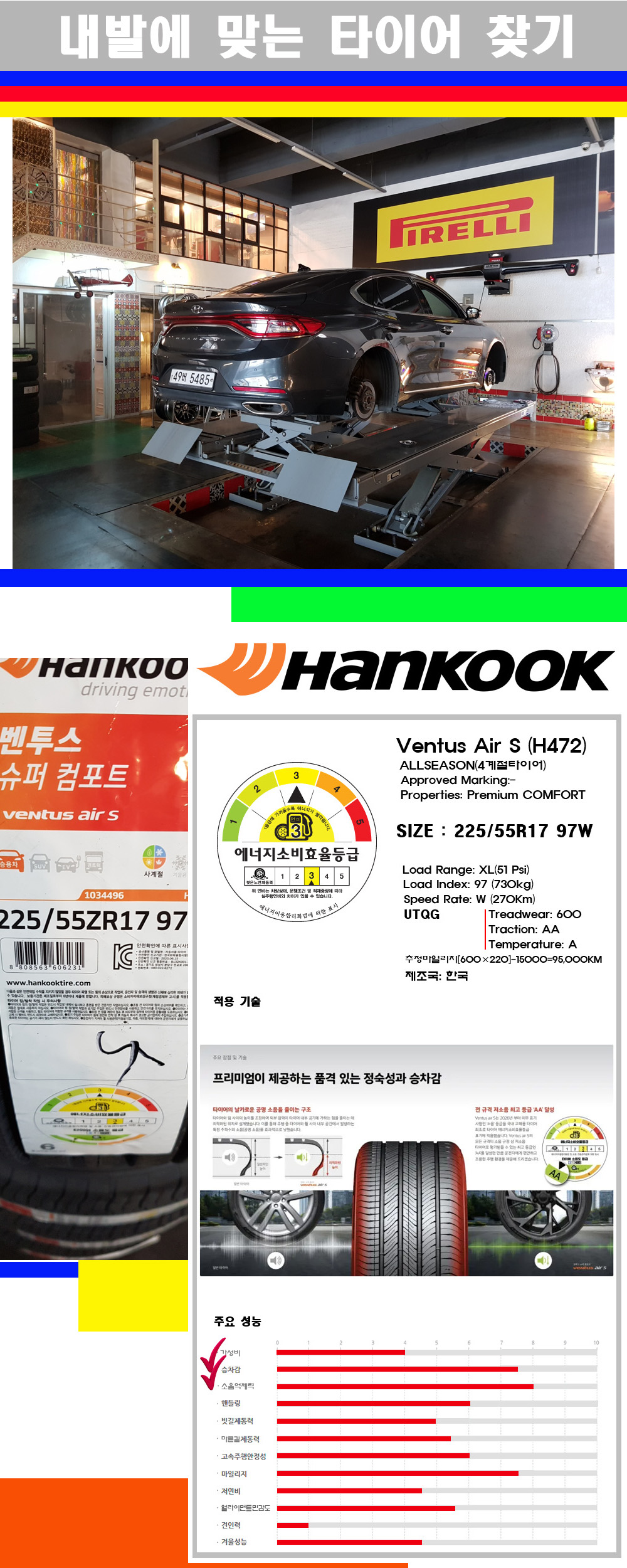 | [대구한국타이어싼곳] [그랜저타이어] 2255517 한국타이어 벤투스 에어S 225/55R17 | |||