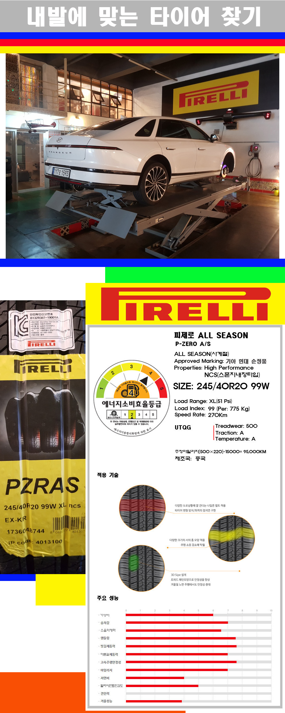| [대구피렐리타이어] 그랜저GN7타이어 2454020 피렐리타이어 피제로 올시즌(순정품) 245/40R20 | |||