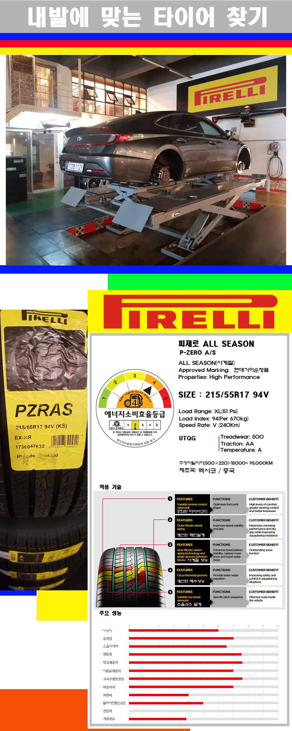 | [대구피렐리타이어] 쏘나타타이어 2155517 피렐리타이어 피제로 올시즌(순정품) 215/55R17 | |||