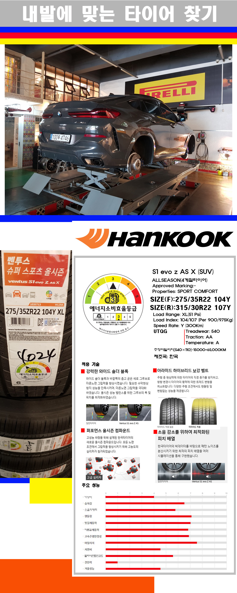| [대구한국타이어] BMW X6타이어 2753522 3153022 한국타이어 벤투스 에보Z AS 전륜: 275/35R22 후륜: 315/30R22 | |||
