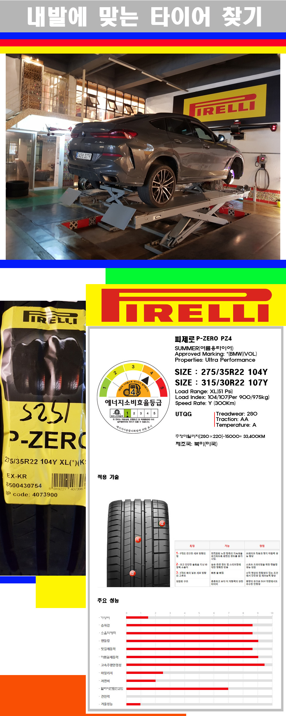 | 대구피렐리타이어 BMWX6타이어 2753522 3153022 피렐리타이어 피제로 PZ4 전륜 275/35R22 후륜 315/30R22 | |||