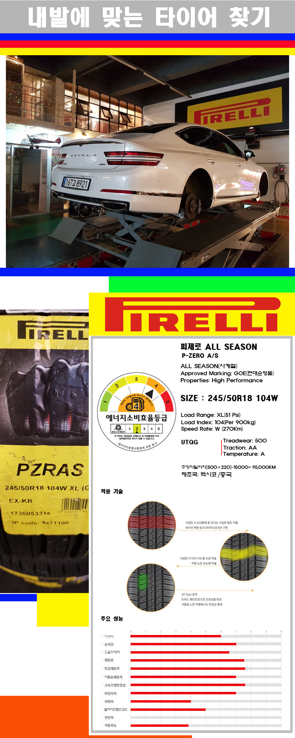 | 대구피렐리타이어 제네시스G80타이어 2455018 피렐리타이어 피제로올시즌 (순정품) 245/50R18 | |||